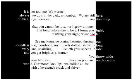 “Distant dark,” whispers Diana, warming the words in her mouth.